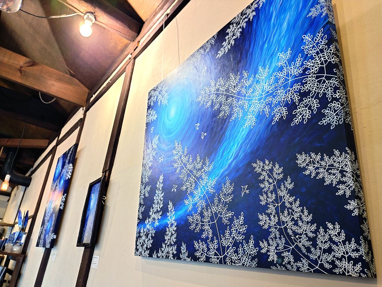 コーヒーが美味しいカフェでの展示です